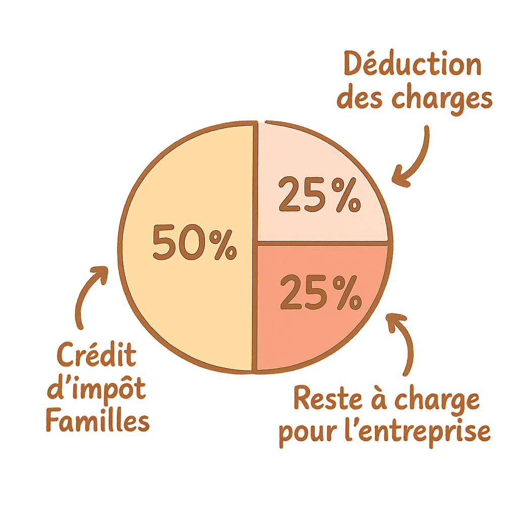 – Crédit d’Impôt Famille (CIF) : prise en charge de 50 % du coût de la place, dans la limite de 500 000 € par an et par entreprise.