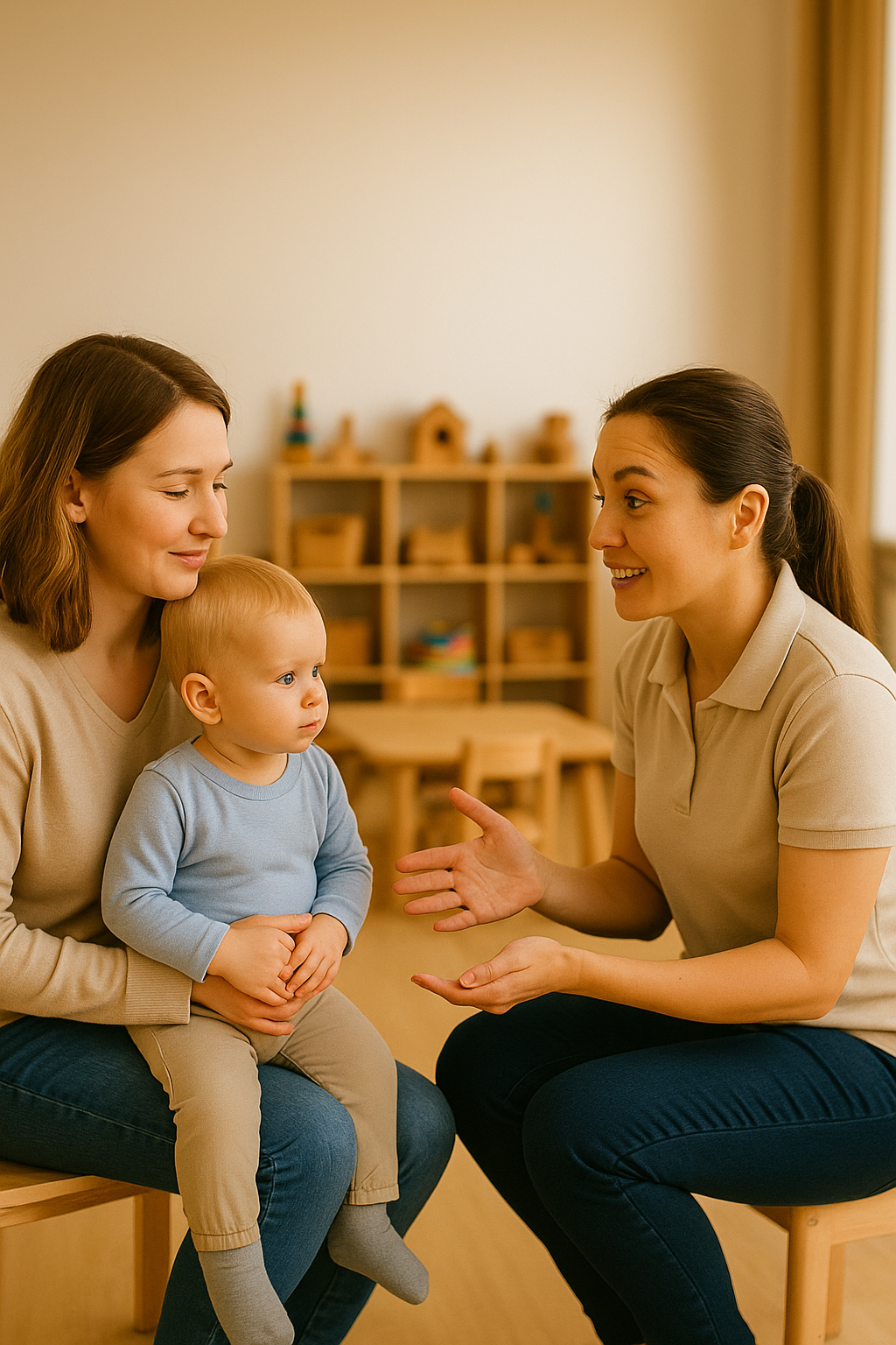 Nous proposons une écoute active du quotidien (sommeil, alimentation, émotions, rituels…), via échanges simples et chaleureux, pour une continuité entre la maison et la crèche.